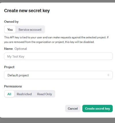 여기서 다음을 진행하기 전에 두 가지 더 해야 할 일이 있습니다. 해당 서비스를 이용하기 위해서는 OpenAI에 비용을 지급해야 합니다(1만원 이하). 그리고 OpenAI의 API키를 연결해야 합니다.
